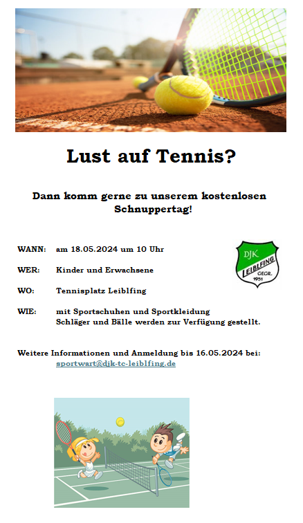 Schnupperstunden Tennis am Samstag 18.05.24 von 10:00-12:00 Uhr