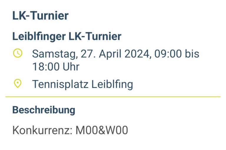Am Freitag, den 20.10.2023 findet ab 19.00 Uhr die Saisonabschlussfeier mit Neuwahlen im Tennisheim Leiblfing statt. Tagesordnung: Begrüßung Kassenbericht Jahresrückblick…